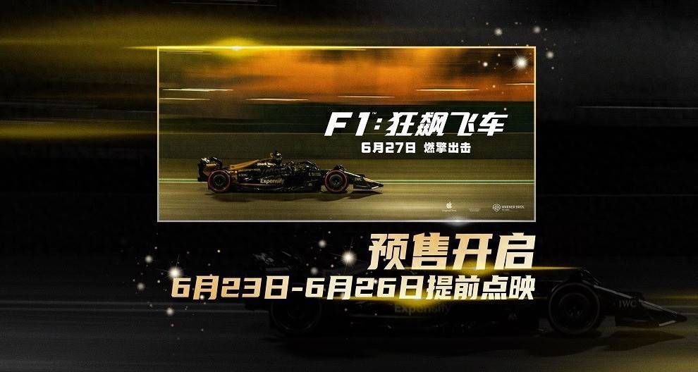 电影《F1:狂飙飞车》由Apple原创电影公司出品,华纳兄弟影片公司发行,影片将于6月23日至6月26日开启全国特殊制式影厅提前点映,6月27日国内与北美同步正式上映,预售已开启,燃擎出击敬请期待。